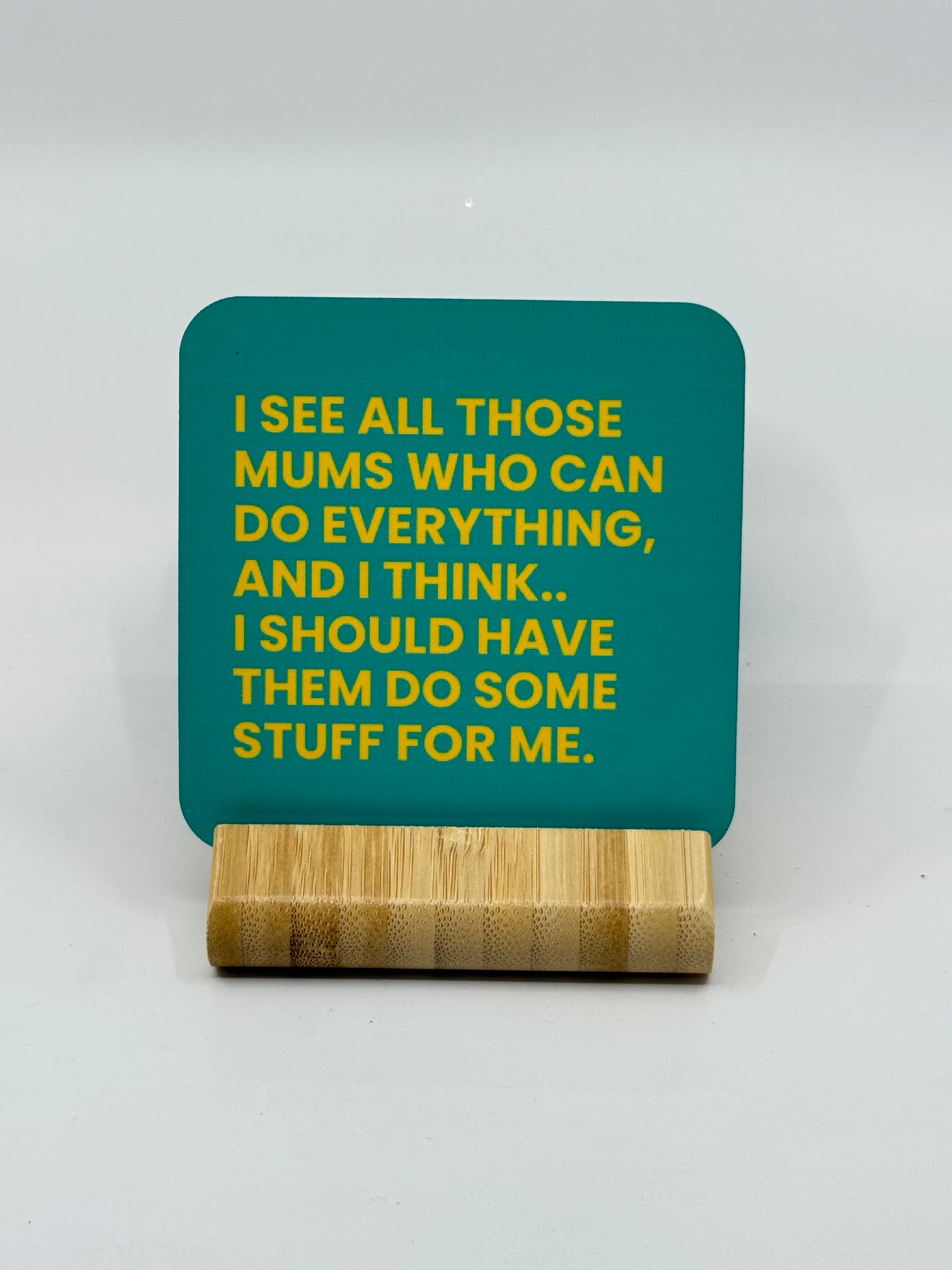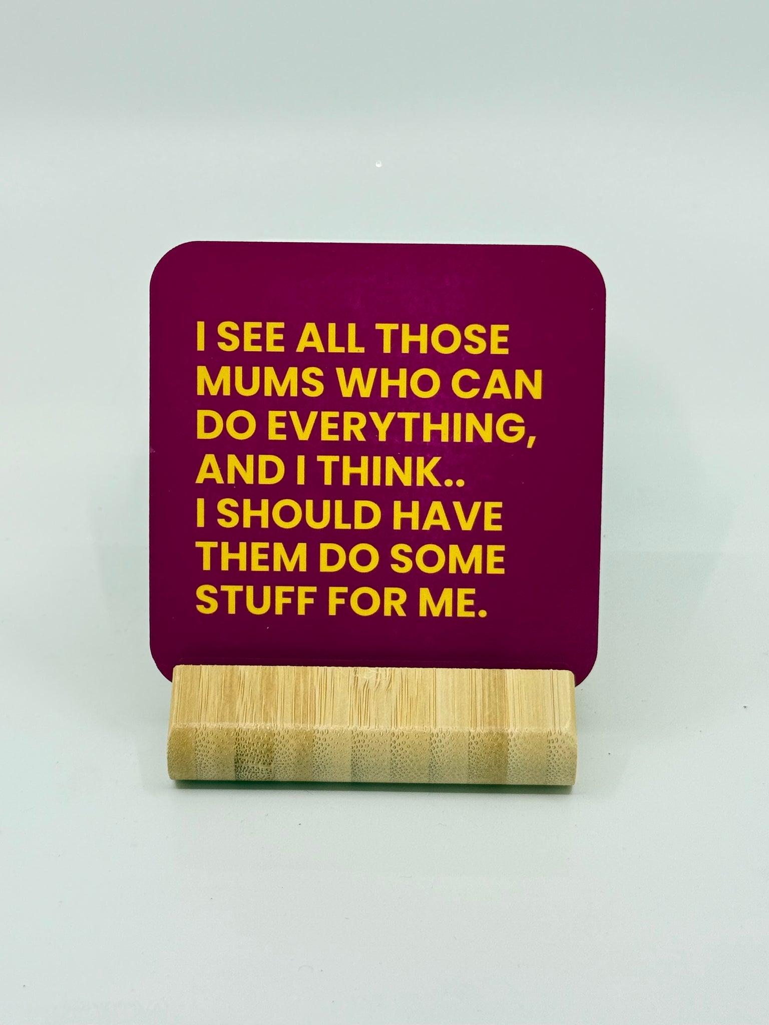 This coaster features the quote: “I see all those mums who can do everything and I think…I should have them do some stuff for me”.